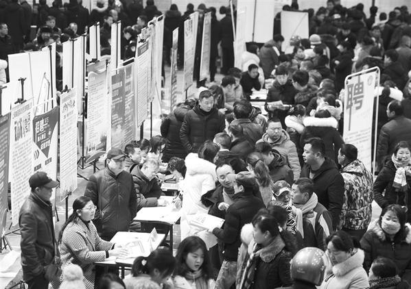 2月10日,求职者在江苏省金湖县新春企业用工招聘会现场了解招聘信息,寻找就业岗位。 当日是正月初六,江苏省金湖县举办新春企业用工招聘会,吸引了机械制造、仪表线缆、医药食品、饮食商贸等20多个行业的企业进场招聘。新华社发