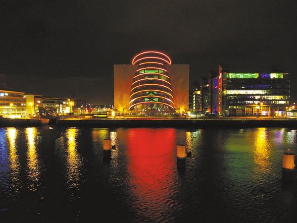 ② 2月3日晚,爱尔兰首都都柏林的都柏林会议中心点亮“中国红”。