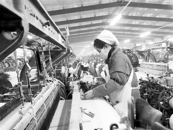 2月14日,沈丘县周营镇一个纺织车间内机器轰鸣,工作人员正在生产线上科学有序工作,力争实现新春首季生产、销售“开门红”,并争取在新的一年里生产更多的产品,创造更好的经济效益。