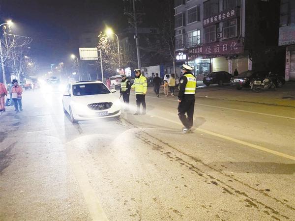图一:春节期间,西华县公安局交警大队全警动员查处酒驾行为,确保春节期间道路安全。记者 张猛 通讯员 康少华 胡永杰 摄