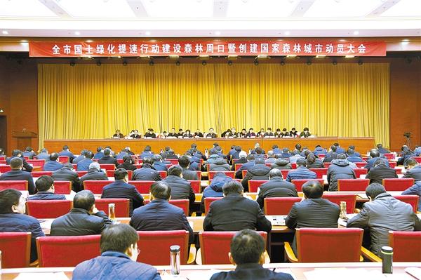 本报讯 (首席记者 刘彦章) 2月18日上午,全市国土绿化提速行动建设森林周口暨创建国家森林城市动员大会召开。会议贯彻落实省有关会议精神,安排部署创建国家森林城市和春季植树造林工作,全面实施国土绿化提速行动,建设森林周口。会议号召,立即行动起来,抓住春季植树造林的黄金时节,攻坚克难,奋勇争先,厚植绿色,不断开创国土绿化、森林周口建设新局面,为建设生态宜居的美丽周口作出新的更大贡献,争取2022年成功创建国家森林城市。