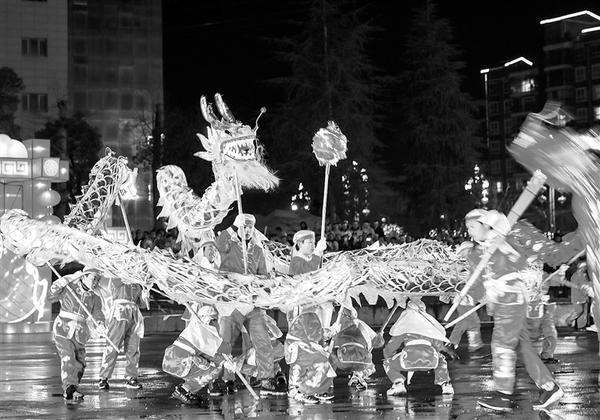 ② 2月17日,民间艺人在贵州省铜仁市玉屏侗族自治县舞阳广场表演舞龙。