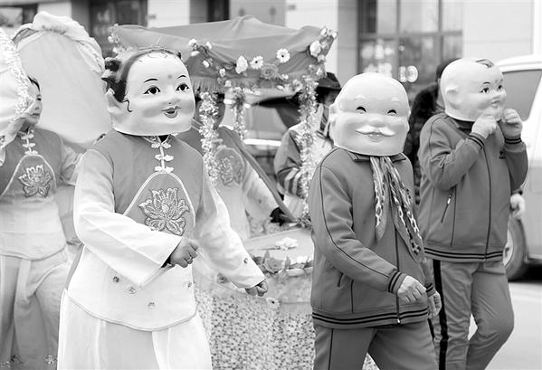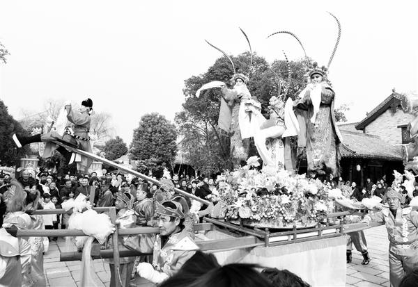 ③ 2月17日,民间艺人在山东省枣庄市台儿庄古城表演“背阁”。
