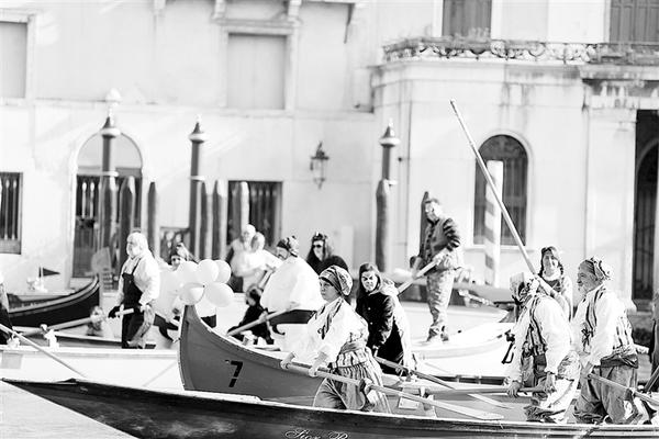2月17日,在意大利威尼斯,人们参加水上巡游。