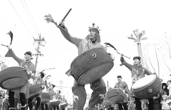 ④ 2月19日,民间艺人在山东省烟台市福山区进行民俗表演。
