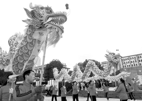 ② 2月19日,在江西省万载县,民间艺人在表演舞龙。