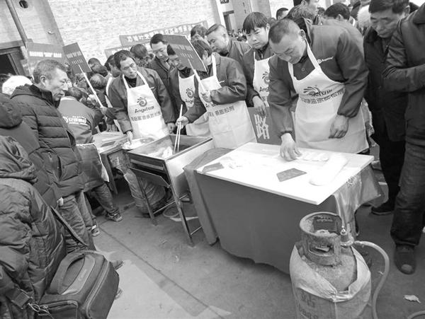 2月19日上午,商水县邓城镇举办首届民俗文化节和第八届“安琪酵母油条节”,来自全镇30个行政村的90名炸油条高手参加了炸油条比赛。