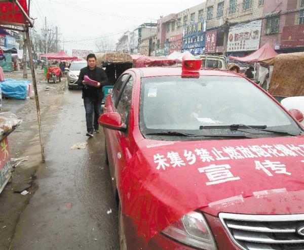 春节过后,淮阳县各乡镇利用宣传车、大喇叭,广泛开展烟花爆竹禁燃禁放宣传,努力营造和谐、平安的社会氛围。图为朱集乡宣传车沿街宣传烟花爆竹禁燃禁放政策。记者 侯俊豫 摄