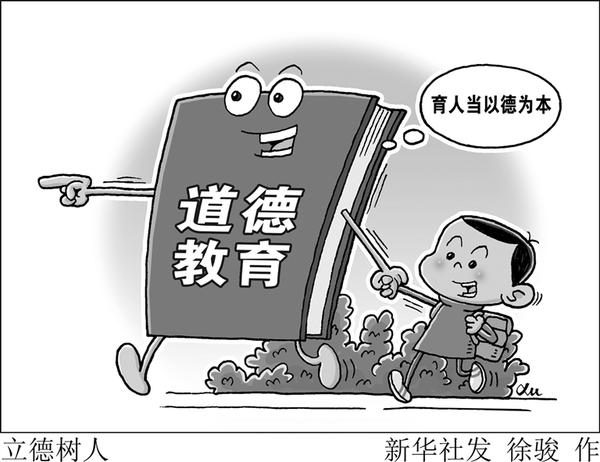 日前,中共中央、国务院印发了《中国教育现代化2035》和《加快推进教育现代化实施方案(2018-2022年)》。前者提出了推进教育现代化的八大基本理念,第一条就是“更加注重以德为先”;后者提出了推进教育现代化的十项重点任务,第一也同样是实施新时代立德树人工程。两个文件都明晰地传递出“育人当以德为本”的理念。新华社发 徐骏 作