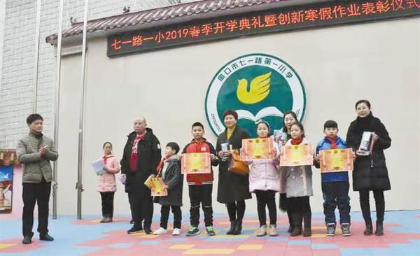 2月25日,周口市七一路第一小学举行了一场别开生面的创新寒假作业表彰仪式。据介绍,该校改革传统寒假作业模式,在广泛征求家长委员会意见的基础上,引导学生围绕“活力春节、文化春节、温情春节、阅读春节、平安春节、环保春节、勤俭春节”七大主题开展教育实践活动,在家长参与、陪伴与督促中,共同完成创新实践作业。王力 摄