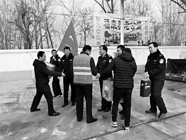 近日,市公安局犯罪侦查支队副支队长赵国弼、纪检书记王艳蕾,带领该支队七大队党员民警来到川汇区周商大道垃圾中转站,慰问工作在一线的环卫工人,给他们带去礼品,感谢他们为城市美化作出的贡献。记者 姬慧洋 摄