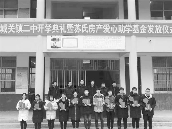 2月28日,扶沟县城关镇二中的开学典礼因爱心助学金的发放而更加温暖。苏氏房产中介有限公司总经理苏宇飞为该校60名品学兼优的困难学生每人发放了300元助学金,为20名优秀教师发放了物质奖励。苏宇飞表示,以后公司每年将举行一次爱心助学活动,帮助寒门骄子顺利完成学业,助力扶沟教育发展。②7记者 谢永静 摄