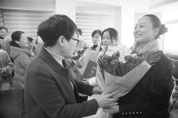 “三八”妇女节来临,昨日,项城市妇联举行“鲜花送雷锋”活动,为23位爱心女士颁发荣誉证书,送上了鲜花。图为活动现场。 张永久 摄