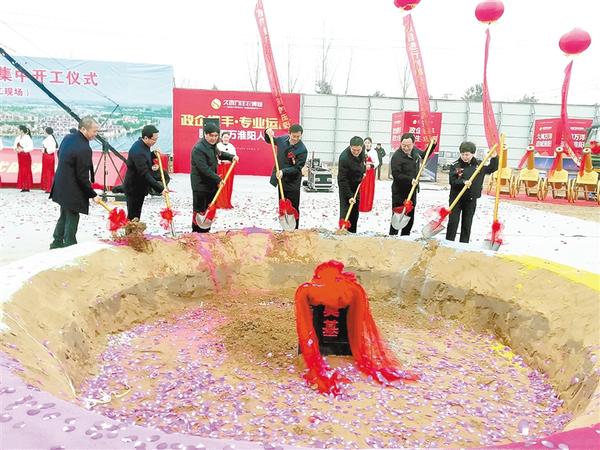 本报讯 (记者 侯俊豫 文/图) 春回大地,万物勃发。2月26日上午,位于淮阳县北二环南侧的久鸿·万洋农博城项目建设工地热闹非凡,该县2019年第一批12个项目集中开工仪式在此举行。县领导马明超、王毅、苏中林、刘涛、冯涛、李凤丽等出席开工仪式,县直各单位及相关乡镇负责人等参加开工仪式。县委书记马明超下达开工令,县长王毅致辞,县委常委、常务副县长刘涛主持开工仪式。