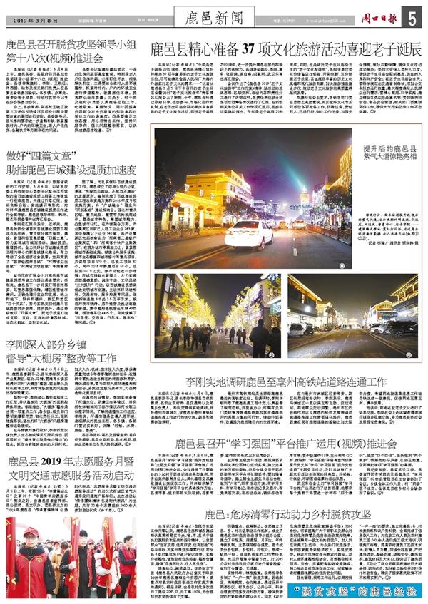 本报讯(记者 李瑞才) “今年是老子诞辰2590周年,鹿邑县将精心组织并举办37项丰富多彩的老子文化旅游活动,尽可能满足全县人民和广大海内外游客对老子文化的需求……”记者从鹿邑县3月5日下午召开的老子生日庙会暨2019“老子文化旅游年”筹备情况汇报会上了解到,今年,鹿邑县将通过政府引导、社会参与、市场化运作的机制,在老子生日庙会期间举办丰富多彩的老子文化旅游活动,同祝老子诞辰2590周年,进一步提升鹿邑在国内和国际上的影响力。县领导梁建松、李刚、雷申、张丽娟、侯自峰、闫家明、武卫东等出席汇报会。