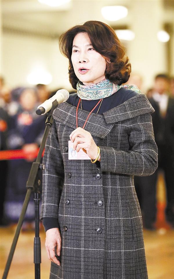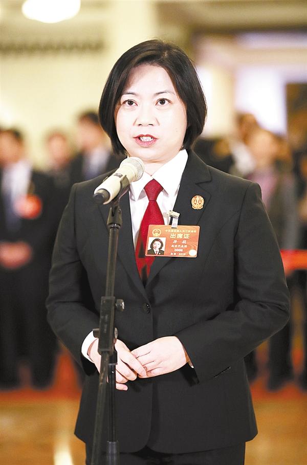 3月8日,十三届全国人大二次会议在北京人民大会堂举行第二次全体会议。这是全国人大代表厉莉在“代表通道”接受采访。