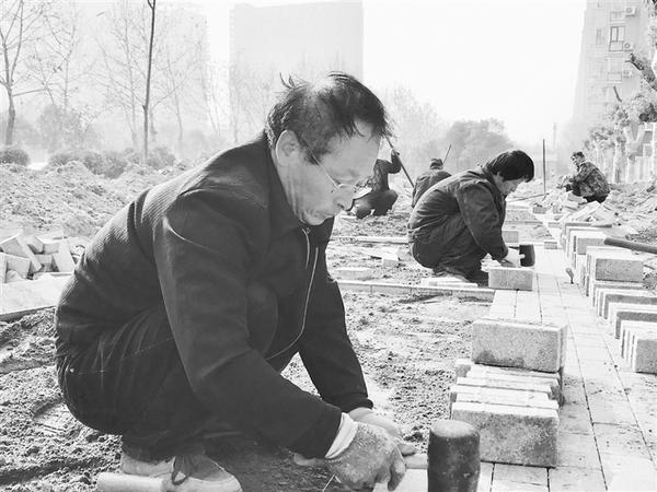 入春以来,周口市进一步加大中心城区市容市貌建设力度,为广大市民创造更加舒适宜居的生活工作环境。图为3月11日,工人们正在加紧铺装周口大道西侧人行道。