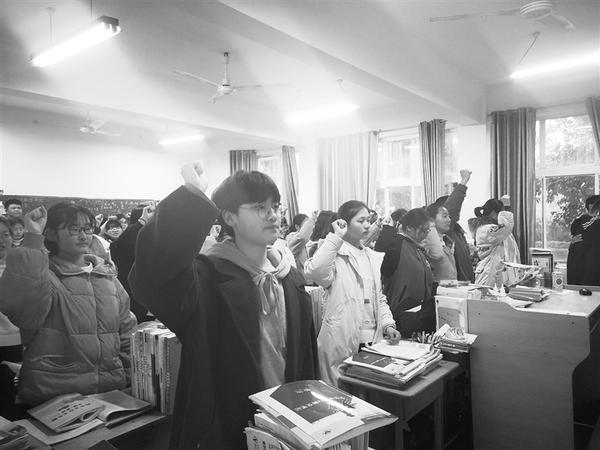 “我将严守纪律,拼搏向上;我将带着从容的微笑,去赢取志在必得的辉煌。我要奋斗……”近日,记者在周口一高采访时看到,课前,学生们在宣读奋斗誓词。