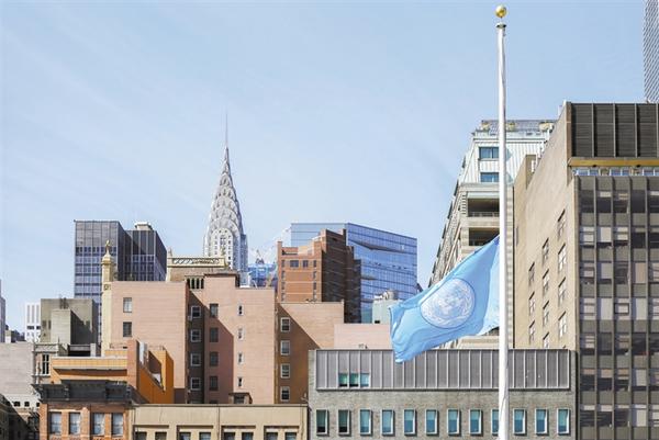 3月11日,位于纽约的联合国总部降半旗,悼念在埃塞俄比亚坠机事故中遇难的联合国工作人员。新华社发