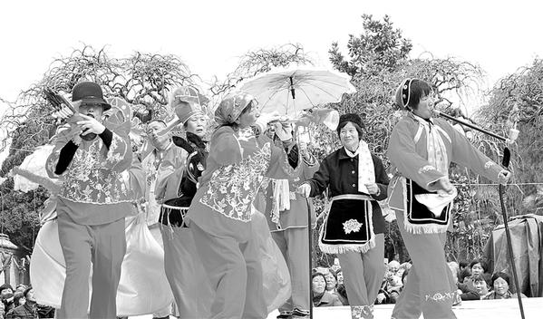 3月12日,由淮阳县文化部门举办的民间艺术比赛在太昊陵剪枝公园开赛。该县14支民间艺术表演队参加了比赛。他们忘情的表演,让游客乐不知返。