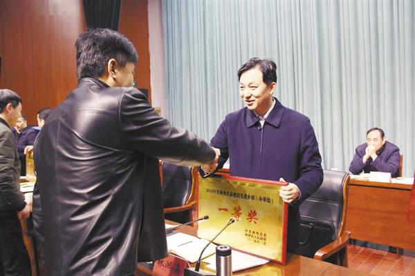 会上,县委副书记、政法委书记程维峥就国土绿化提速行动、建设森林西华、“四水”同治、农田水利基本建设等工作作了全面安排;县委常委陈秉生传达了2018-2022年暨2019年度森林西华生态建设工作重点和目标任务;县政府正县长级干部郭继红宣读了《关于表彰2018年度林业生态建设先进乡镇办事处和先进个人的决定》和《关于表彰2017-2018年冬春农田水利基本建设“红旗渠精神杯”竞赛先进单位和先进个人的决定》,与会领导为获奖单位颁了奖;各乡镇办事处及有关单位向县委递交了《2018-2022年暨2019年度森林西华生态建设目标责任书》《2019年度农田水利基本建设目标责任书》。