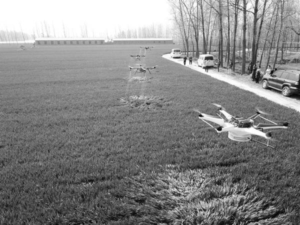连日来,西华县无人机产业园党支部组织志愿者为红花、皮营、西夏、艾岗、叶埠口、东夏等乡镇义务开展“一喷三防”服务,免费为贫困村群众农作物喷洒农药,确保夏粮丰收丰产。图为无人机喷洒农药现场。 记者 刘俊涛 摄