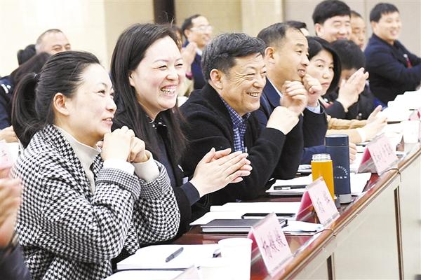 参加周口市第四届人民代表大会第四次会议的代表们在认真审议政府工作报告。