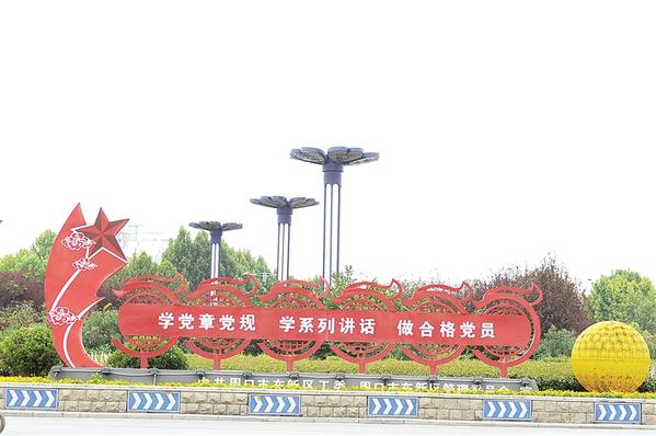 在这幅蓬勃发展的画卷中,有一面鲜红的党旗高高飘扬,在发展的道路上指引方向。