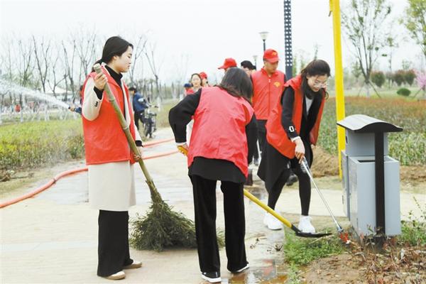 本报讯(记者 张劲松 通讯员 王玉凤 文/图) 迎着和煦的春风,迈着轻快的步伐,怀着愉悦的心情,3月22日下午,城乡一体化示范区的100余名志愿者来到武盛大道和颍河路交叉口附近,参加义务劳动和志愿者服务活动启动仪式。区管委会副处级调研员巴兵出席活动。