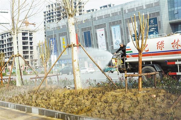 开发区以创建国家卫生城市、国家森林城市为契机,大力加强城市绿化和管理工作,进一步提升城市品位,优化城市环境。图为开发区绿化工作人员认真养护新栽植树木。