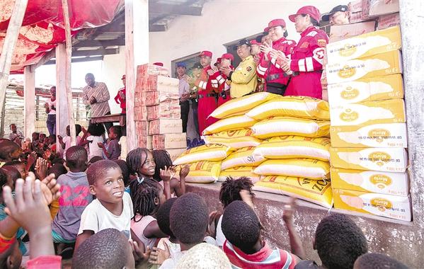 3月28日,中国救援队向莫桑比克中部地区的一所孤儿院捐赠物资。 在遭受强热带气旋“伊代”重创的莫桑比克中部地区实施国际救援的中国救援队,28日向当地孤儿院捐赠食品和饮用水,并帮助洪灾地区转运重伤灾民。新华社发