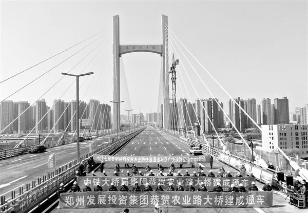 3月31日,郑州市农业路大桥的建设者们在通车仪式上庆祝。