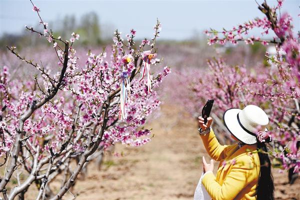 3月30日,一名游客正在“农家花园”里赏花拍照。仲春时节桃花艳,广大市民纷纷走出家门,踏青赏花。