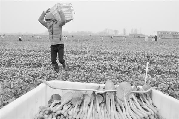 3月31日,商水县唯一供港蔬菜种植基地金陆农业有限公司菜农正在收割时令菜心。该公司流转土地1800多亩,建设大棚100多个,解决了218人的就业问题,所产蔬菜全部销往香港。