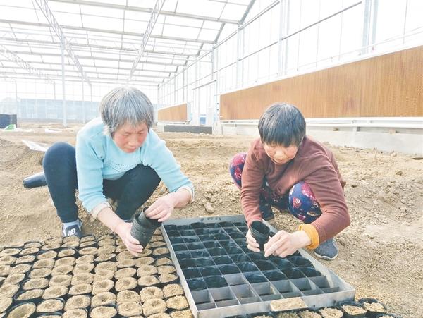 时下,气温回升,春种春播正当时。在沈丘县卞路口乡肖门村新建的玻璃温室育苗棚里,两名留守妇女正在用穴盘繁育生产西葫芦苗。据介绍,穴盘育苗技术是采用无土材料做育苗基质、一穴一粒、一次性成苗的技术,不仅能提高幼苗的品种纯度、减少残留病菌,而且具有温室利用率高、便于集约化管理、方便存放运输等优点,移植成活率接近100%。
