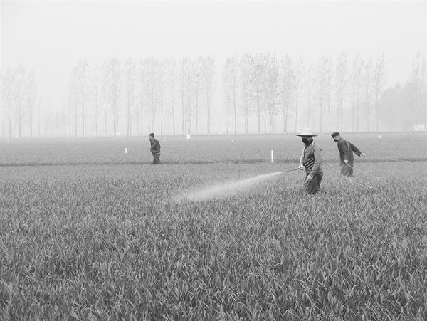 4月4日,商水县张庄乡张坡村的“田保姆”正在对麦田进行病虫害防治。大部分小麦由于播种早、密度大、旺长等原因,加上目前温度逐渐升高,容易发生各种病虫害。该乡积极组织广大群众对麦田进行科学管理,力争今年小麦丰产丰收。乔连军 摄