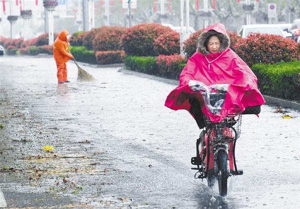 4月9日早,中心城区一市民正冒雨出行。受较强冷空气影响,4月8日起,我国中东部不少地方出现气温“跳水”,并伴有降水过程。李宗宪 摄