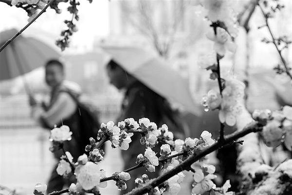 4月9日,张家口市几名小学生冒雪走在上学路上。当日,受较强冷空气影响,河北张家口迎来降雪。新华社发