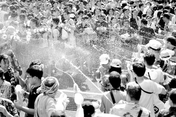 4月13日,在泰国曼谷,人们参加泼水狂欢活动庆祝宋干节。