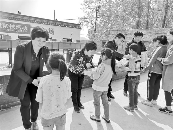 4月13日上午,市直幼儿园园长郭蕊到西华县皮营乡皮营行政村开展关爱留守儿童帮扶活动,为20位贫困留守儿童赠送了护眼台灯。