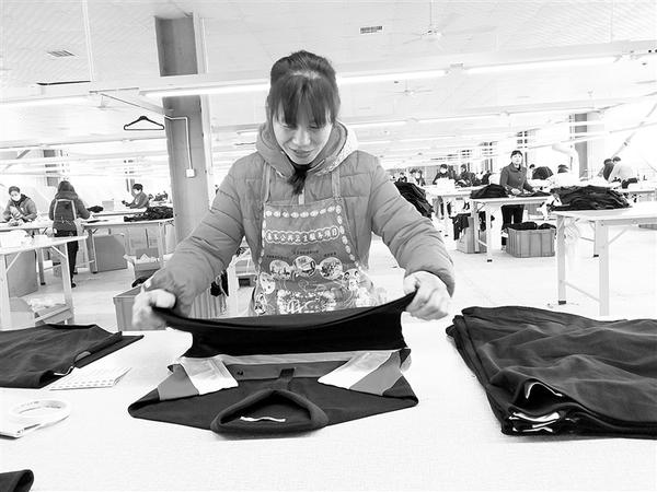 近年来,扶沟县把“巧媳妇工程”作为引导农村妇女脱贫致富的民心工程来抓,引进了河南省水天服装科技有限公司等企业,让农村妇女挣钱、干农活、照顾家庭“三不误”。图为女工正在车间劳作。②8 记者 谢永静 摄