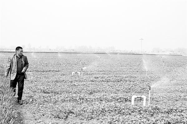 近年来,商水县大力推进农业节水工程建设,逐步把过去的大水漫灌变为现在的精滴细灌,让田地在少“喝水”的情况下提高产量,为全县农业供给侧结构性改革夯实水利基础。图为4月14日上午,商水县一农业种植合作社在对蔬菜进行节水灌溉。