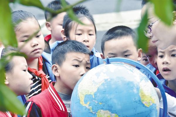 4月22日,一位老师正在向学生讲解地球知识。当日是第50个世界地球日。今年世界地球日的主题是“珍爱美丽地球 守护自然资源”。全国多地举行系列主题活动,科普地球科学知识,宣传环保理念。罗京来 摄