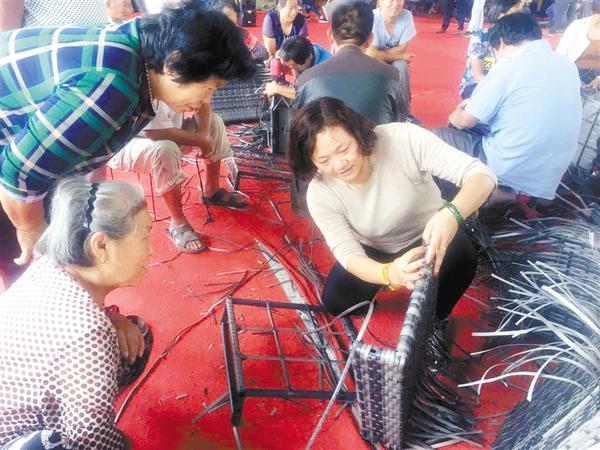 扶贫车间建成后,田爱丽又马不停蹄地前往浙江购买藤编材料,并把40户贫困户安排到扶贫车间当工人。为了解决藤编中的技术难题,她又从外地请来藤编师傅,手把手教村民如何编织桌椅、沙发等。看到产品销售出去、工人们领到工资,田爱丽的脸上露出了微笑。