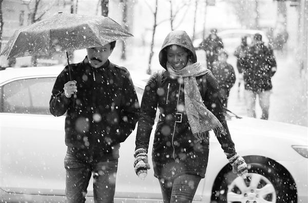 美国第三大城市芝加哥27日罕见降雪,气温骤降。新华社发