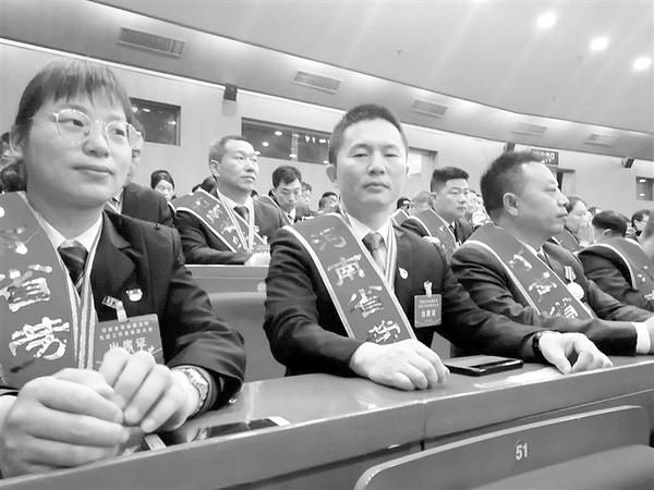 为大力弘扬劳模精神、劳动精神,谱写新时代的劳动者之歌,4月26日,省委、省政府在省人民会堂举行2019年庆祝“五一”国际劳动节暨表彰河南省劳动模范和先进工作者大会,隆重表彰全省各条战线涌现出的劳动模范和先进工作者。河南亿星实业集团董事长李超峰(前左二)和周口市天然气公司一线工人郭红波荣膺“河南省劳动模范”称号。 通讯员 张照军 供图