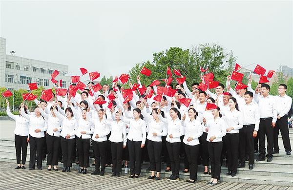 4月30日,郸城县纪委监委举行“我和我的祖国”庆祝中华人民共和国成立70周年大合唱,用自己的歌声表达对祖国的一片深情。图为该县纪委监委人员在县人民公园举行大合唱的场景。