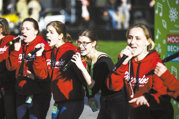 5月4日,在俄罗斯首都莫斯科,表演者们在莫斯科春天阿卡贝拉(无伴奏合唱)音乐节演唱。新华社发