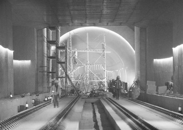 5月6日,中铁十四局的工人在施工。目前,京张高铁清华园隧道无砟轨道施工全部完成,已经具备铺轨条件。新华社记者 邢广利 摄