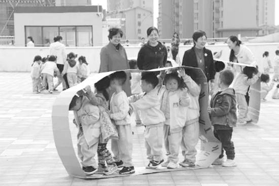 近日,由市教体局基础教育教研室组织的“全市幼教五大领域教研基地观摩活动”之艺术领域观摩活动在周口市市直幼儿园文昌分园举行。图为传统户外游戏展示。